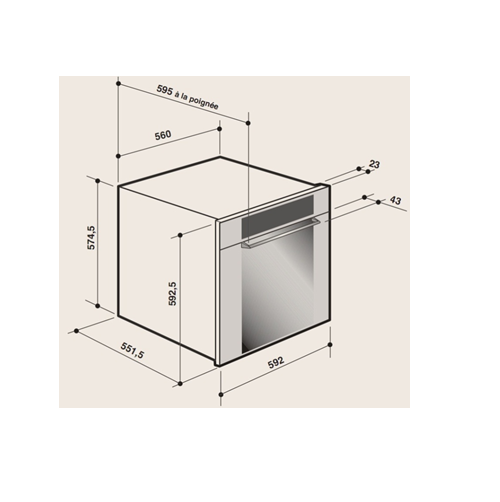 – Kích thước: 598C x 594R x 595S mm
