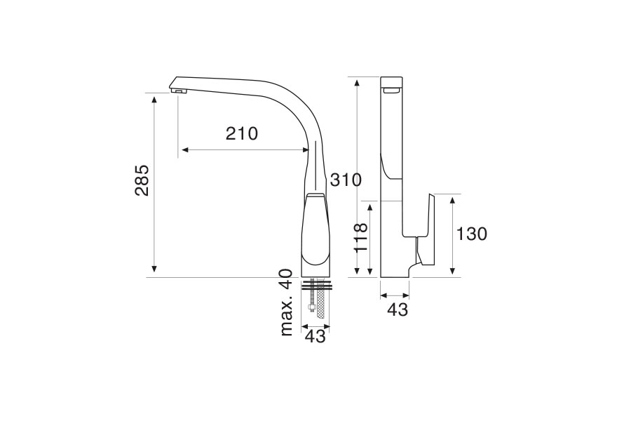 – Chiều cao vòi: 310mm